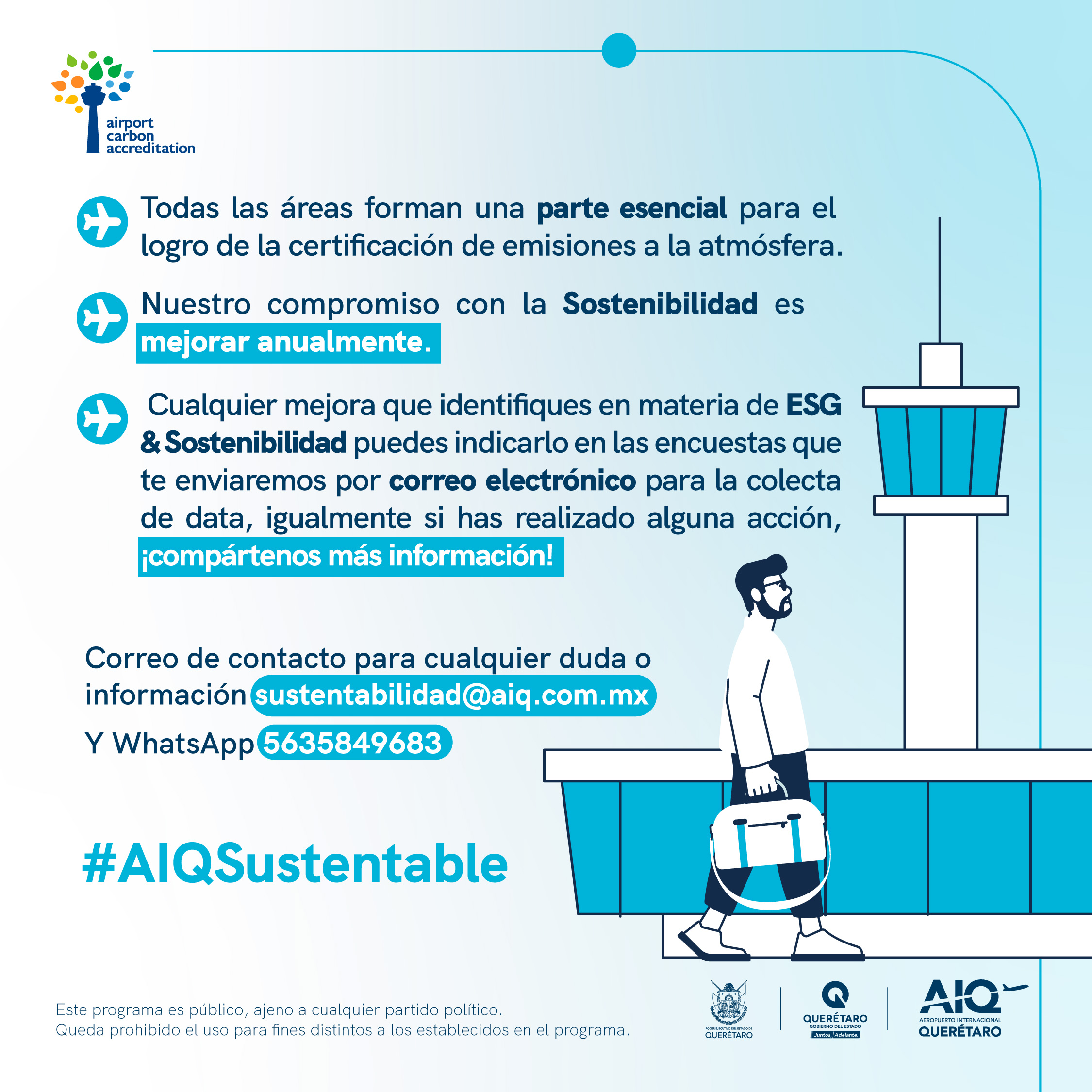 Our campaigns are communicated to our airport community, internal staff, and clients, aiming to raise awareness and promote actions that strengthen our sustainability culture. Join us in adopting these good practices at the airport, at home, and in your workplace.